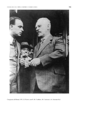 CRONOLOGIA DELL'OPERA SCIENTIFICA DI ENRICO FERMI 341 Congresso di Roma 1931, E. Fermi con O. M. Corbino, M. Cantone e A. Sommerfeld.